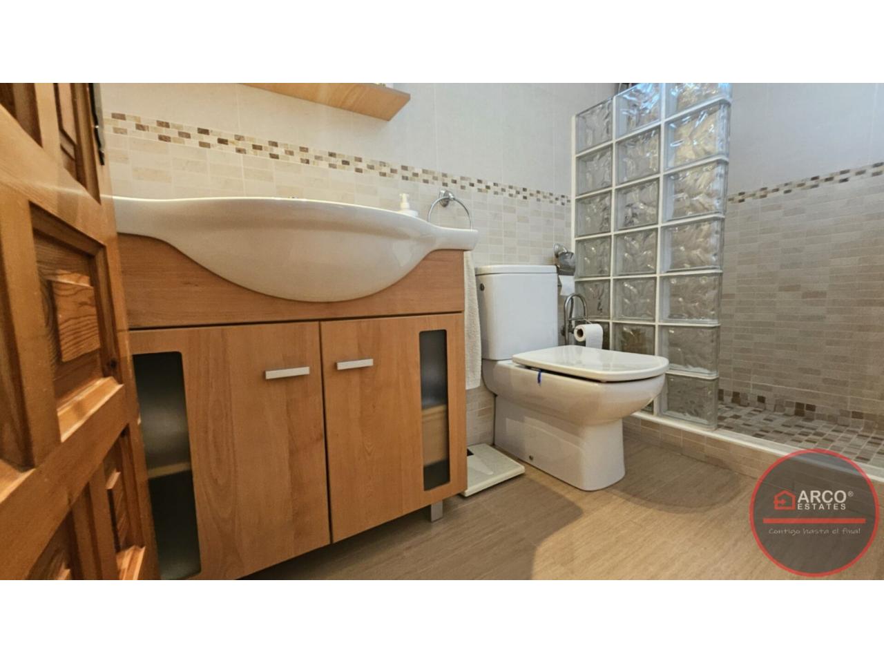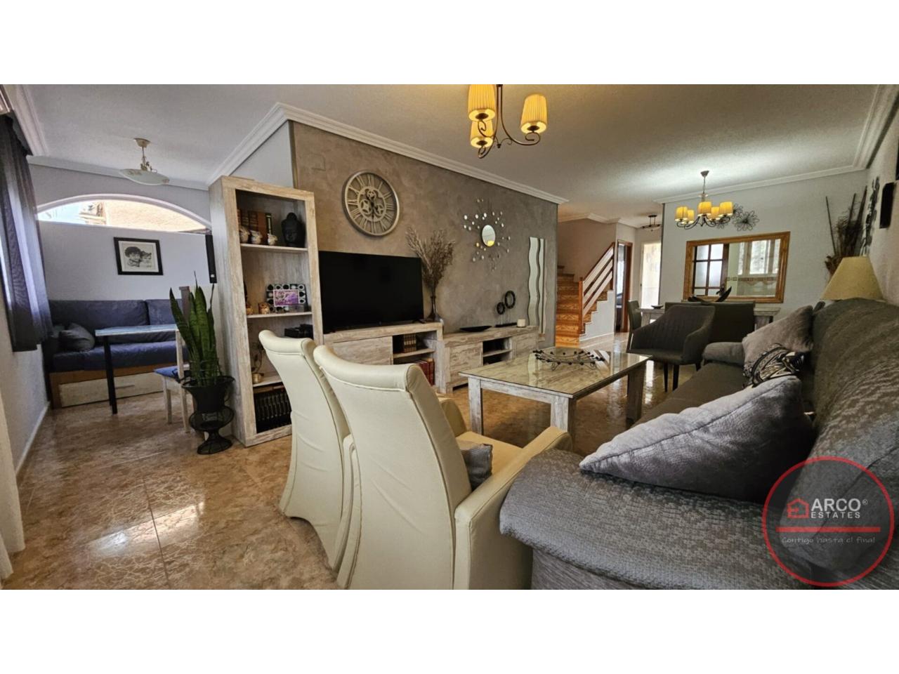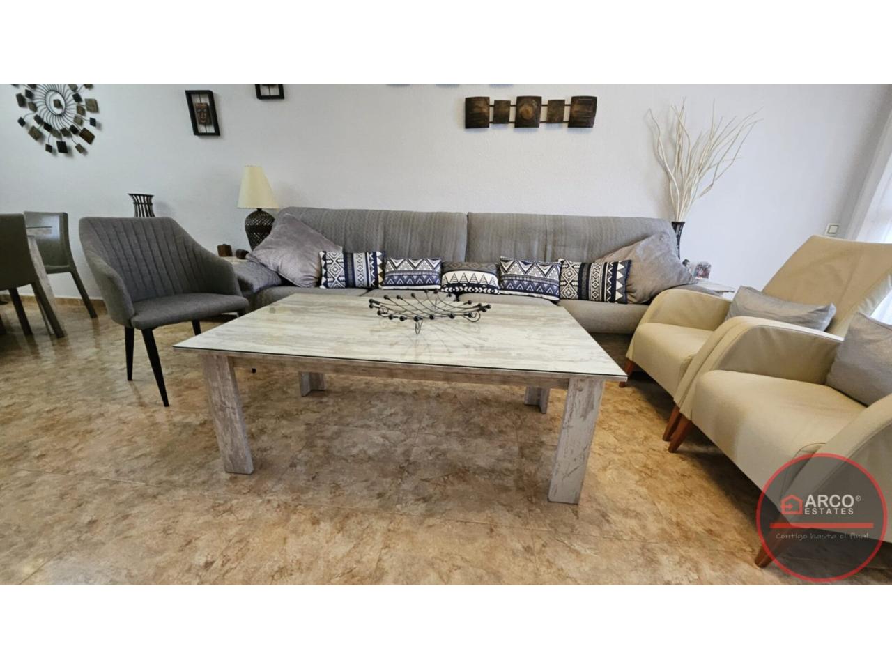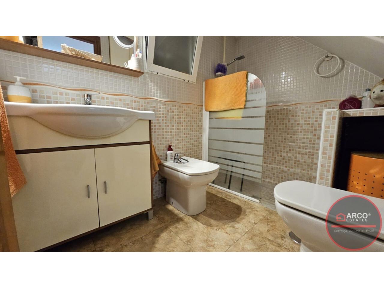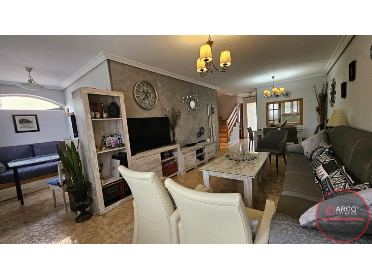 DescripciónSe vende chalet pareado en La Nucia con una superficie total de 99 m² y una parcela de 112 m². Hermoso pareado ubicado en la tranquila zona de Barranco Hondo, La Nucía, urbanizacion Kristal. Con una orientación sur que garantiza luminosidad durante todo el día, este inmueble cuenta con 2 habitaciones dobles y una sencilla; dos de ellas en la planta principal, 2 baños, aire acondicionado, cocina equipada, 2 terrazas, piscina comunitaria, orientación sur y suelos de gres. Disfruta de tus días soleados en su maravillosa terraza o relájate junto a la piscina mientras disfrutas de una barbacoa con tus vecinos. Además, tendrás acceso a zonas infantiles perfectas para los más pequeños y un trastero para almacenar lo que necesites. La casa se encuenra para entrar a vivir; no pierdas esta oportunidad.