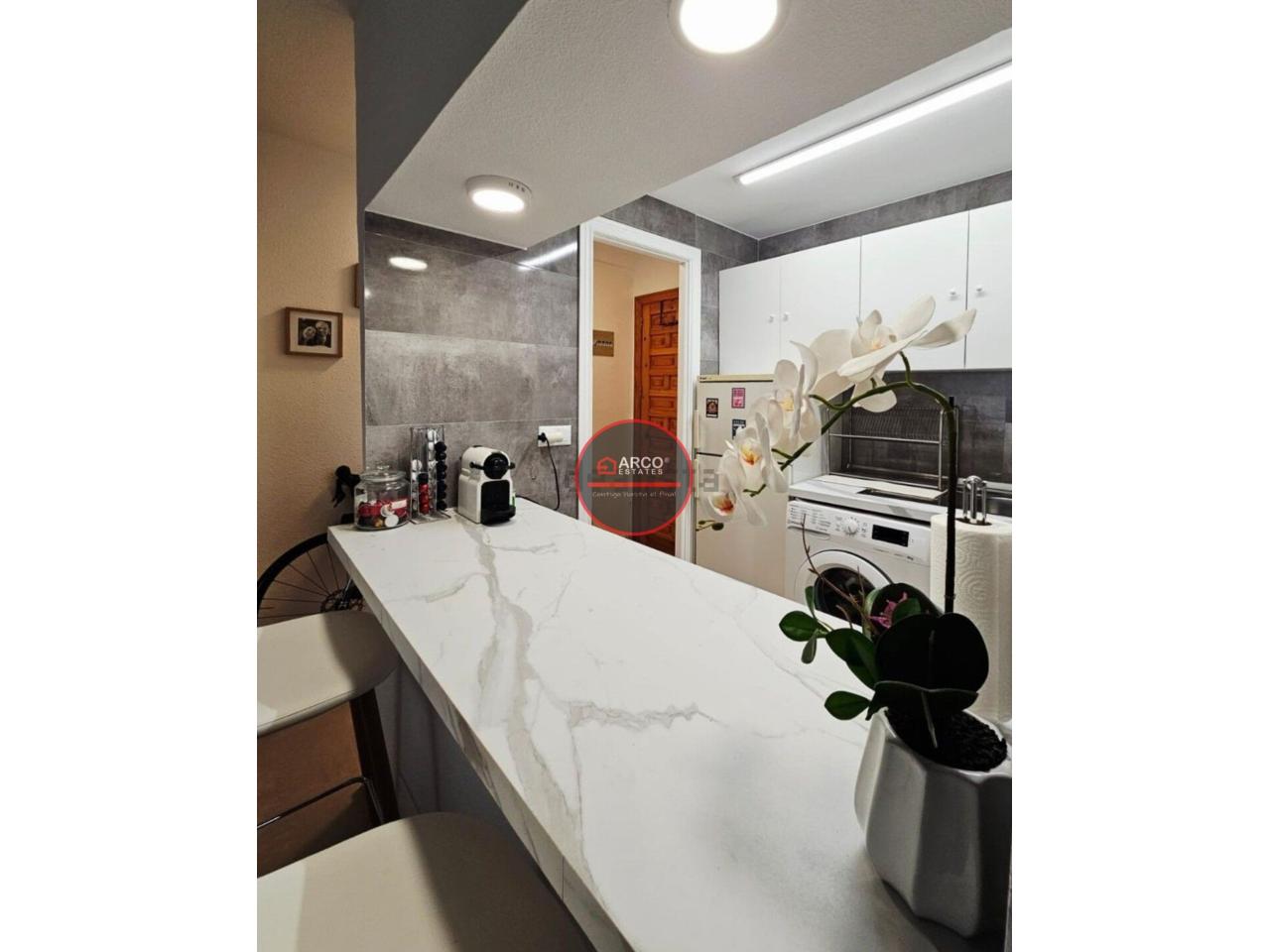 DescripciónPiso en La Nucia reformado, piscina y aparcamiento -- Luminoso piso en venta edificio con ascensor en La Nucia. Con una superficie total y útil de 62 m², cuenta con 2 habitaciones dobles, 1 baño, armarios empotrados, cocina, comedor y una terraza acristalada. El estado de conservación es muy bueno y dispone de parking, jardín y piscina comunitarios. Además, su orientación suroeste garantiza luz natural durante gran parte del día. Ascensor, Muebles, Parking, Solarium, Electrodomésticos. El picoo cuenta con preciosas vistas.